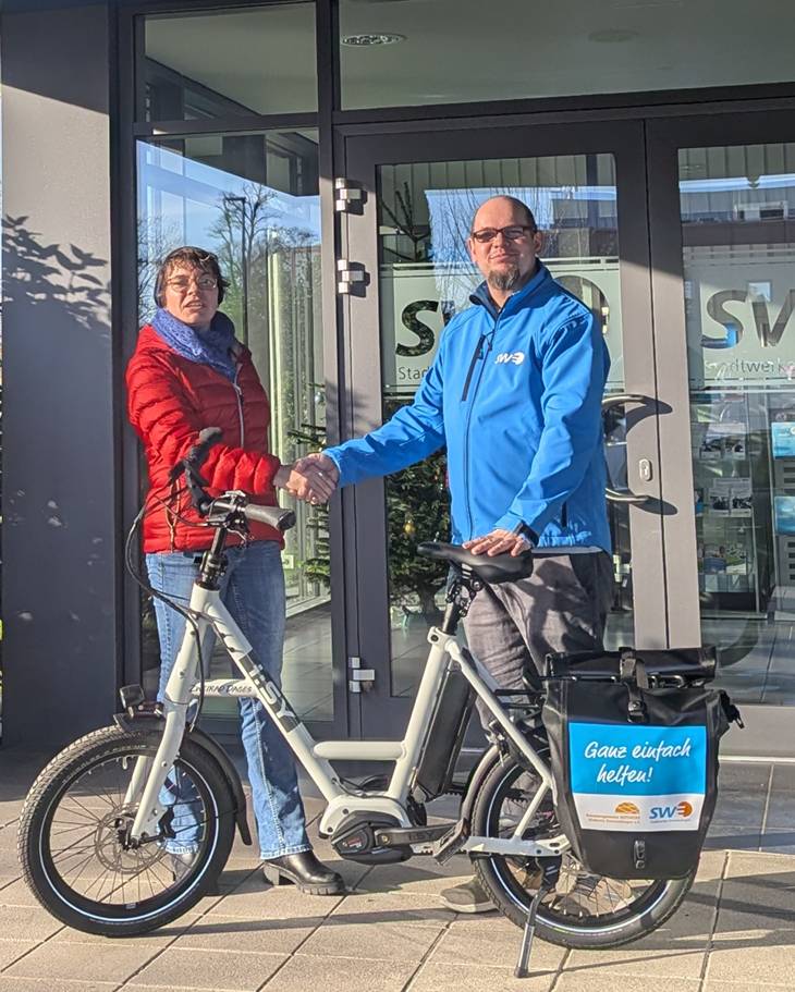 Die Stadtwerke Emmendingen übergaben, Im Rahmen der diesjährigen Spendenaktion, dem Betreuungsverein ein E-Pedelec, das künftig die tägliche Arbeit der Mitarbeitenden erleichtern soll. Gerade im Betreuungsalltag sind viele Wege innerhalb des Stadtgebiets zurückzulegen – das E-Pedelec ermöglicht eine flexible, umweltfreundliche und zeitsparende Mobilität und unterstützt damit die persönliche Betreuung der Klientinnen und Klienten.